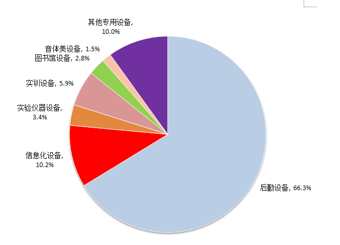 2月份教育装备行业招标采购信息分类占比情况如图1所示:后勤设备招标采购信息共计859条,占66.28%;信息化设备招标采购信息共计132条,占10.19%;实训设备招标采购信息共计76条,占5.86%;实验仪器设备招标采购信息共计44条,占3.40%;图书馆设备招标采购信息共计36条,占2.78%;音体美设备招标采购信息共计20条,占1.54%;其他专用设备招标采购信息共计129条,占9.95%。