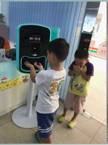 除了做好体温监测,手部卫生也不能忽视。晨检过后,学生把手放入雾化消毒机,消毒液雾化喷液,像抹护手霜一样,搓一搓、揉一揉,把消毒液均匀的浸润到双手的每一个地方,无需冲洗,即可为手部完成常规消毒。