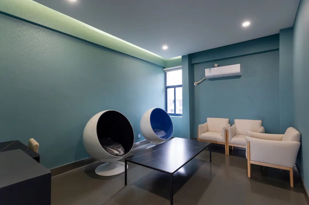 公共配套设施也一应俱全。改造新增4间教师休息室,独立温馨的空间、精心布置的设施、充满设计感的座椅是教师们课堂外休憩的私人空间,也是积攒能量的充电站。