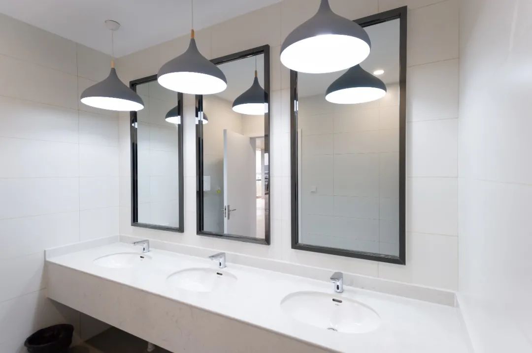 公共卫生间迎来升级版,加装小厨宝解决热水难题,配置人工照明改善采光环境。