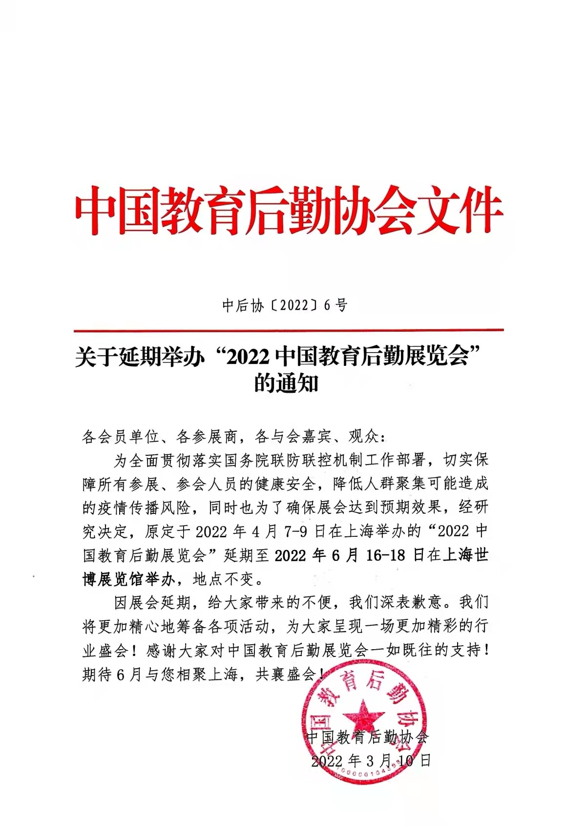 为全面贯彻落实国务院联防联控机制工作部署,切实保障所有参展、参会人员的健康安全,降低人群聚集可能造成的疫情传播风险,同时也为了确保展会达到预期效果,经研究决定,原定于2022年4月7-9日在上海举办的“2022中国K8凯发官网网址览会”延期至2022年6月16-18日在上海世博展览馆举办,地点不变。
