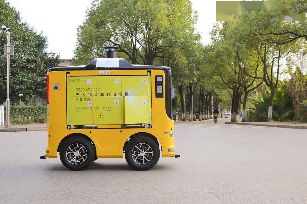湖南省湘潭大学,一辆无人物流车行驶在校园马路上。该发明由机械工程学院小蜜蜂工作室和“行深智能”企业共同研发,为同学们提供更方便快捷的快递取件服务。