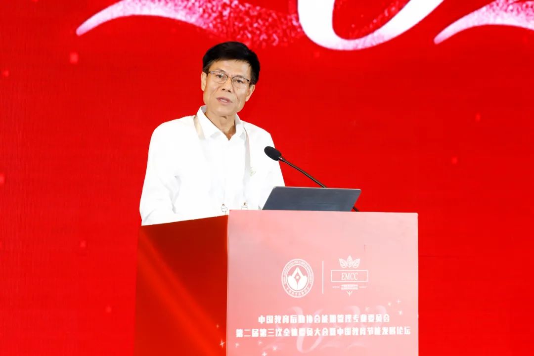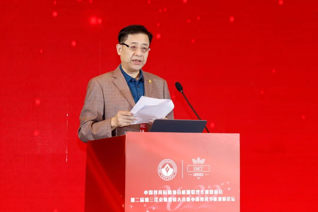中国教育后勤协会常务副会长兼秘书长牛维麟致辞。牛维麟表示,全国能专会成立以来,发挥自身优势,服务政府、高校和行业企业,为协会的发展、绿色低碳校园的建设作出了重要的贡献。牛维麟希望,全国能专会要深入落实“双碳”目标,发挥行业组织作用,引领、推动师生形成简约、适度、绿色、低碳的生活方式。牛维麟要求:一是学起来·深入学习领会习近平生态文明建设思想,站在时代的高度,充分认识到绿色转型、低碳发展的重要性,在高校开展好人才培训。二是做起来·继续开展好“讲好节能故事”活动,让人人从小事做起,从身边做起,引领节能生活新风尚;三是动起来·运用新理念、新技术、新方案,提高教育后勤信息化、智能化水平,宣传好绿色学校创建的典型案例。四是立起来·树立标准、做好榜样,推动建立行业标准。牛维麟指出,面对具有重要历史意义的2022年,教育后勤人将以更多的智慧和勇气,推动教育后勤事业实现高质量发展,以优异的成绩,迎接党的20大的胜利召开。