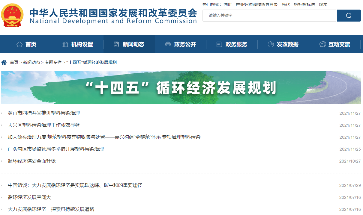▲2021年7月,国家发改委发布《“十四五”循环经济发展规划》