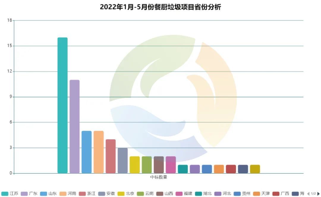 ▲2022年1月-5月餐厨垃圾项目省份分析