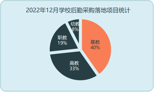 后勤保障是学校开展教育教学等各项工作的基础,因此后勤采购也是学校政采的重要部分。据数据统计,2022年12月学校后勤采购共有734个项目落地,数量比上月增加了64个,百万级采购项目落地271个,千万级采购项目落地28个,更有亿元采购大单重磅落地。数据显示,2022年12月学校后勤采购需求旺盛,采购规模攀升显著。