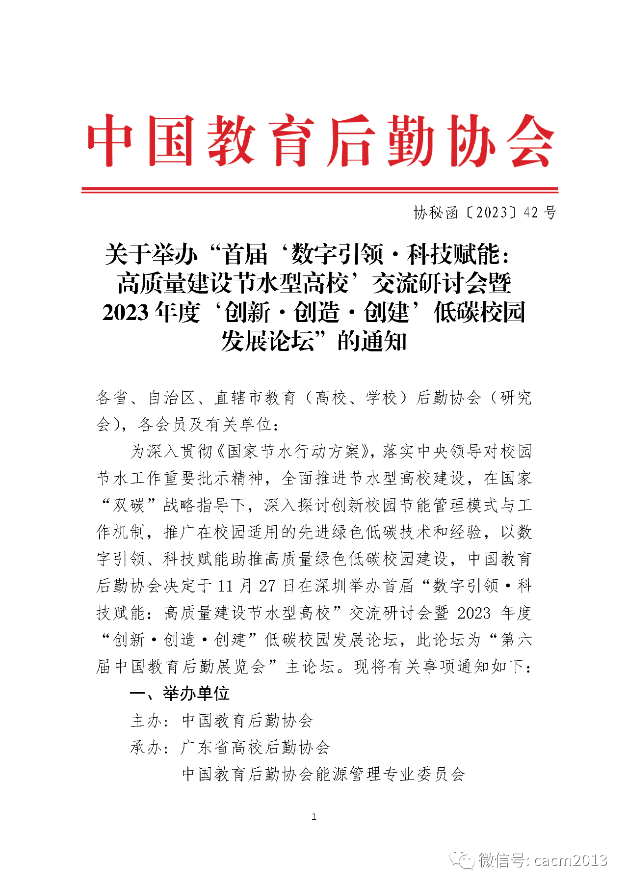关于举办“首届‘数字引领·科技赋能:高质量建设节水型高校’交流研讨会暨2023年度‘创新·创造·创建’低碳校园发展论坛”的通知