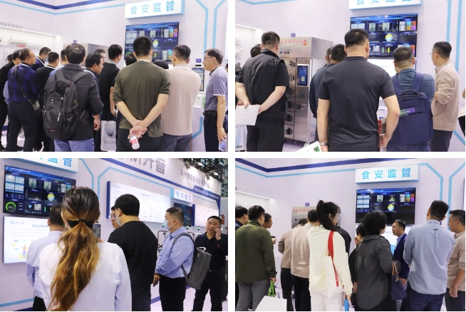 伟邦快膳通助力解决食品安全和食堂环境安全管理问题,实现了多方可视化监管覆盖。其中,智慧食堂监管系统涵盖原料采购、库存管理、菜品制作、食品样品留样、菜品追溯等各个环节,确保食品可追溯、有效监管,打造阳光厨房。智慧食堂的厨房管理模块,利用AI智能预警、报警、台账等功能,支持检测功能,提高食堂监管和清洁工作效率。除以上企业外,展会现场还有记食科技、格物正源、水氪、精卫、银光软件、鸿博智成等企业展示了食品安全相关产品及解决方案,展区人潮熙攘,引爆观展流量。