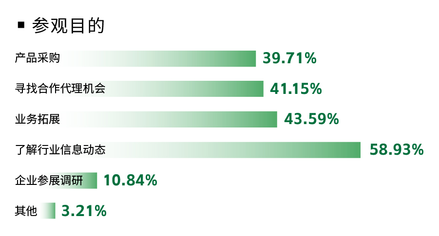 从参观目的来看,超40%的观众来CCLE寻找合作机会,近40% 的观众表示有采购需求。这也表明,CCLE正成为越来越多行业人士交流、采购、合作的首选平台。