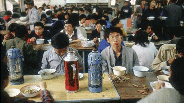 80年代的大学宿舍通常八人一间。寝室南北相对,过道东西贯通,公用的盥洗间和厕所居于中央。与过道相连的双开木门正好对着寝室的大玻璃窗,通风采光,各得其所。白色吊顶和石灰墙壁,水泥地面,装饰简略但也干净整洁;床靠墙而立,小木桌两相并排并列中央,桌子上方正对两根日光灯管。八张小桌上方摆放着日常生活用品。倚墙而立的床底塞满了各自的衣箱。总之,寝室的空间利用率达到了极致,尽管拥挤,但也井井有条。