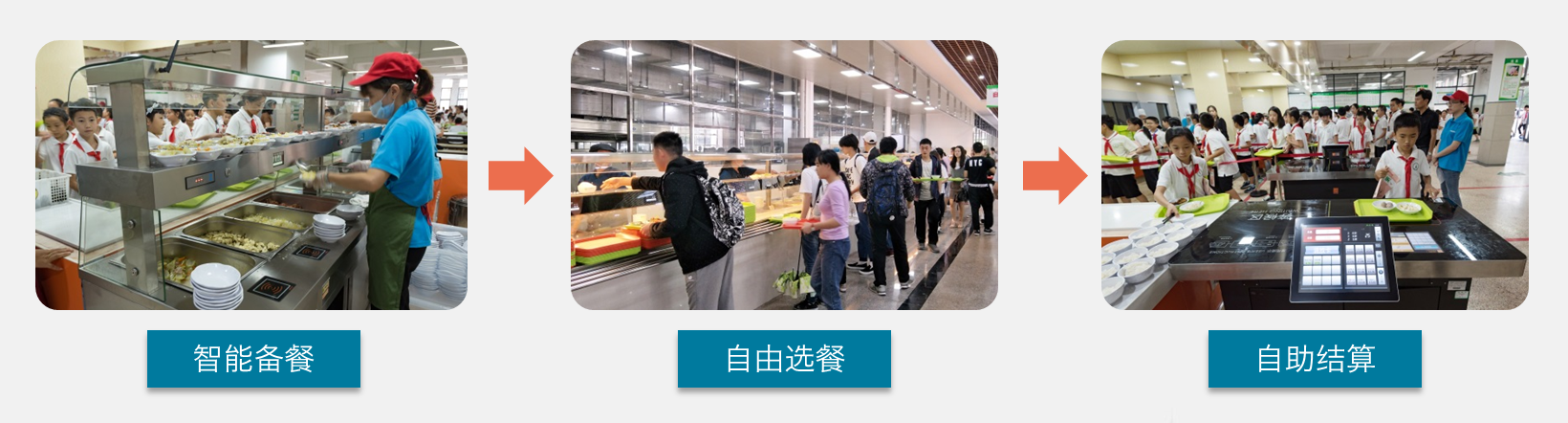 自选供餐数字化解决方案:自选是常用于食堂的一种供餐模式,合理的动线设计,采取按份、按菜价分区打菜,就餐者自由选取,然后整单统一埋单结算,特别适合用于就餐时间集中的K12高年级学生和高校学生。我们通过在餐具中植入芯片,在备餐台嵌入射频读写装置等智能化的手段,提升结算效率,同时还完成了菜品大数据的采集。
