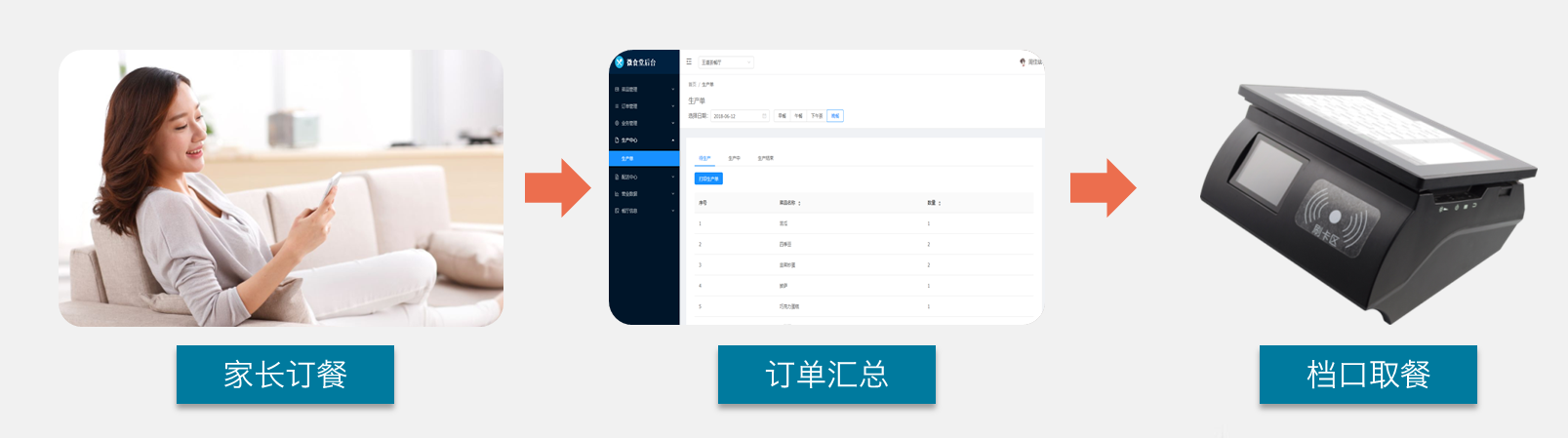 套餐供餐是食堂常见的一种供餐模式,低年级学生由于年龄小,认知不全,不便由他们自由选餐,而是由学校提供可选的营养套餐,家长在手机端进行下单预订,学生饭点到档口通过刷卡或刷脸取餐的方式来完成供餐。