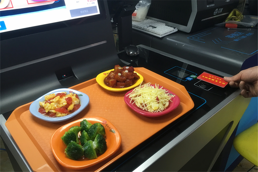 能识别市面上所有餐盘,包括无法植入芯片的铁板烧、砂锅、蒸笼等等,还能识别水果、牛奶、面包等等。
