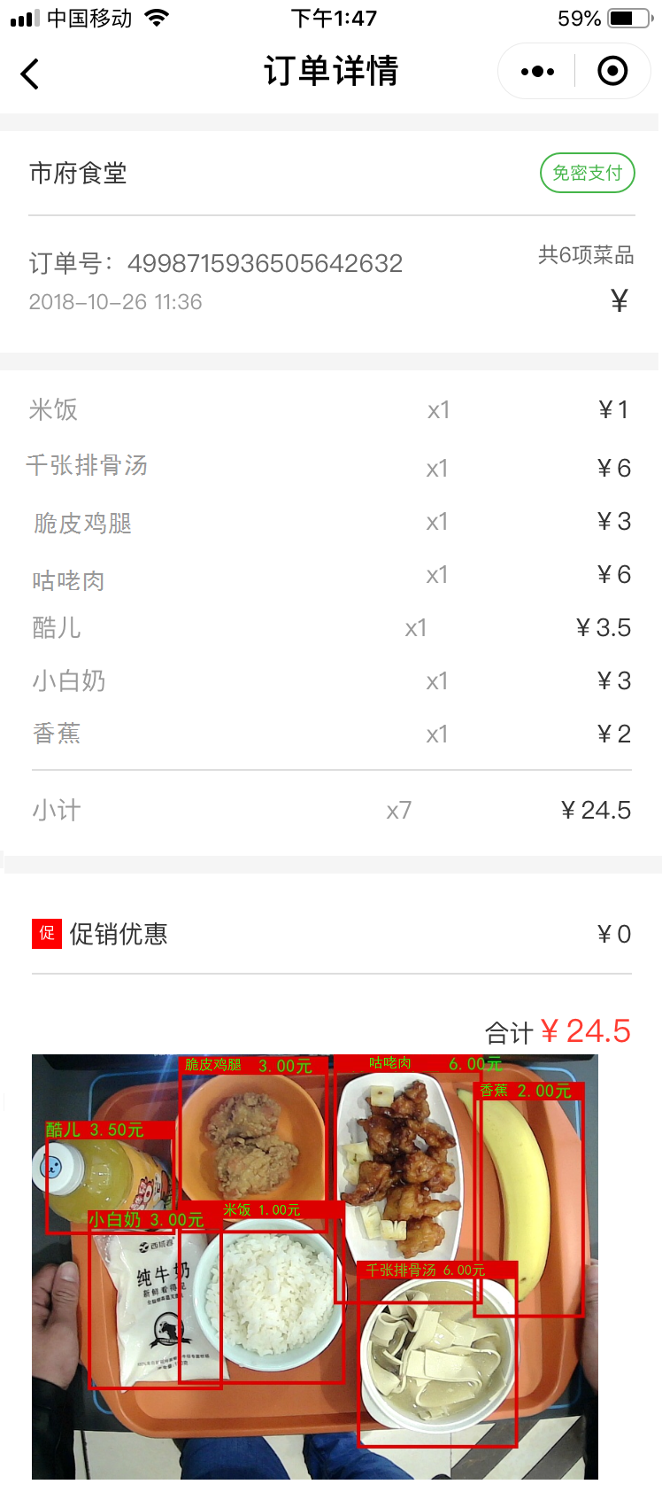 餐台使用AI图像识别技术,自动认知计价,3秒内完成支付,准确率99.9%以上!