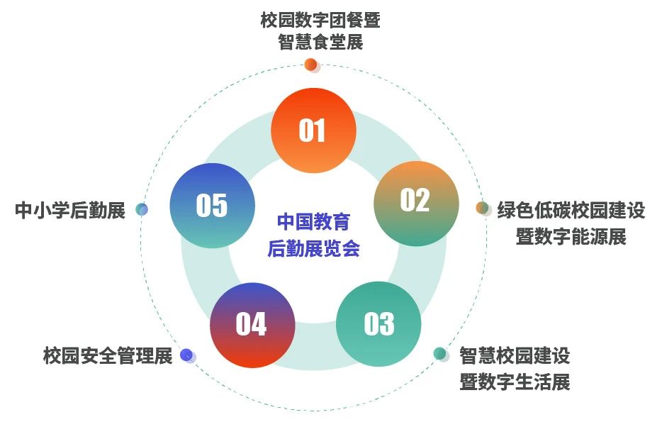 展会聚焦校园餐饮、能源、信息化、安全及中小学后勤发展等领域,特别推出5个品牌主题展。
