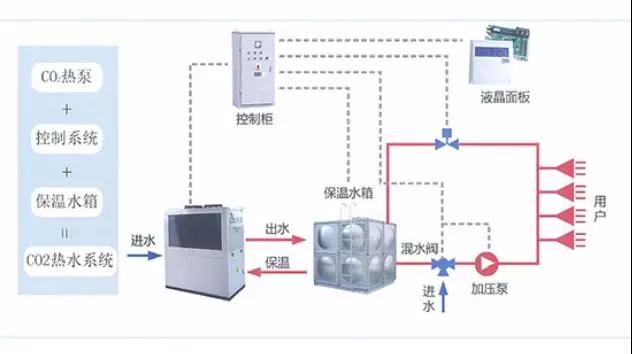 3、CO2热泵高温加热效率高,蓄热量大,可最大限度的提高太阳能利用率。