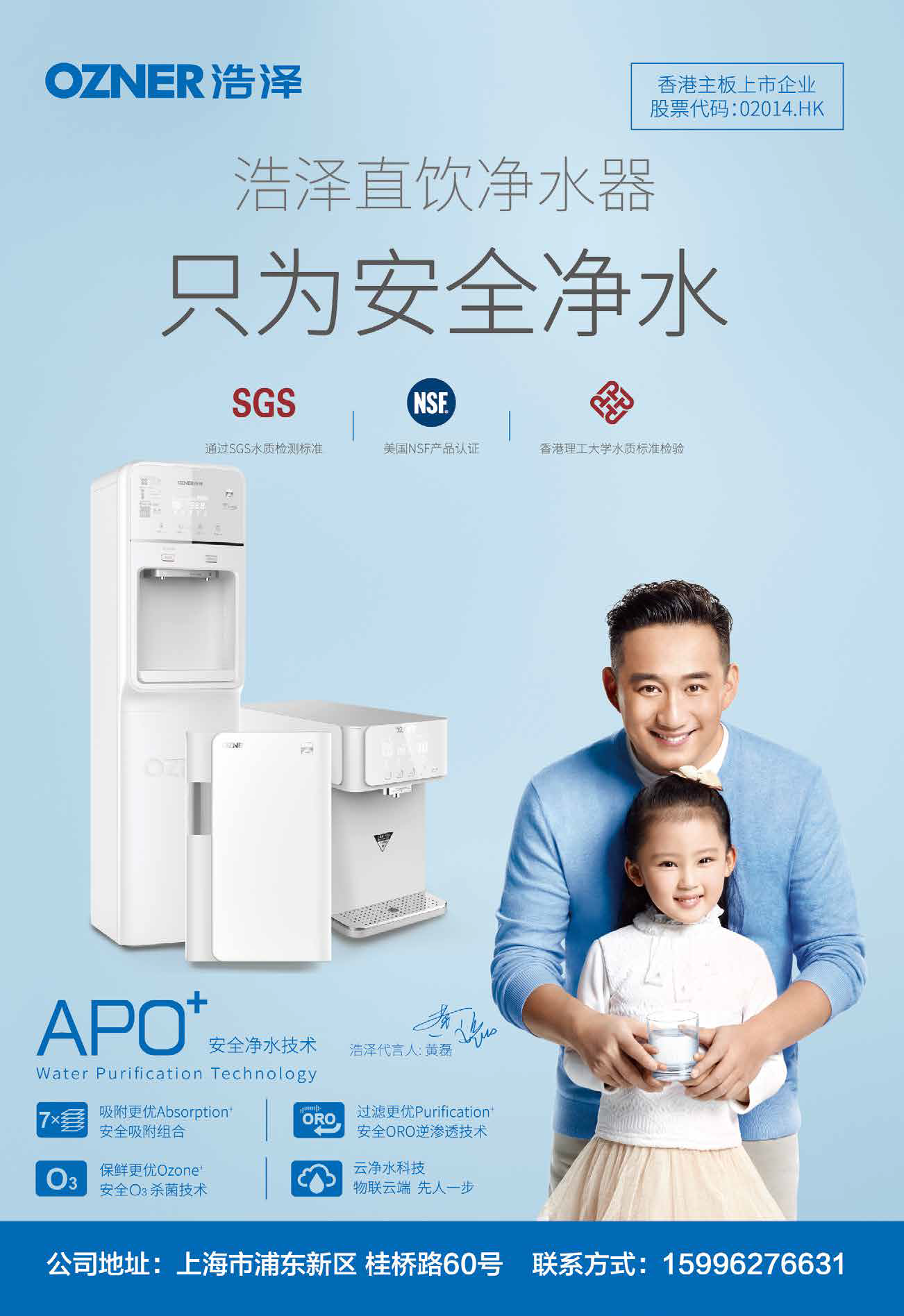 浩泽集团总部位于上海,是一家集科研、生产和销售为一体的集团公司,旗下以净水器、空气净化器、净水洗碗机和核心耗材零部件为四大核心业务。浩泽致力于以物联网技术、客户大数据为核心,向消费者提供以安全饮水产品为入口的智能家居解决方案。2014 年6 月,浩泽净水国际控股有限公司成功于香港联合交易所主板上市(股票代码:02014.HK)。
