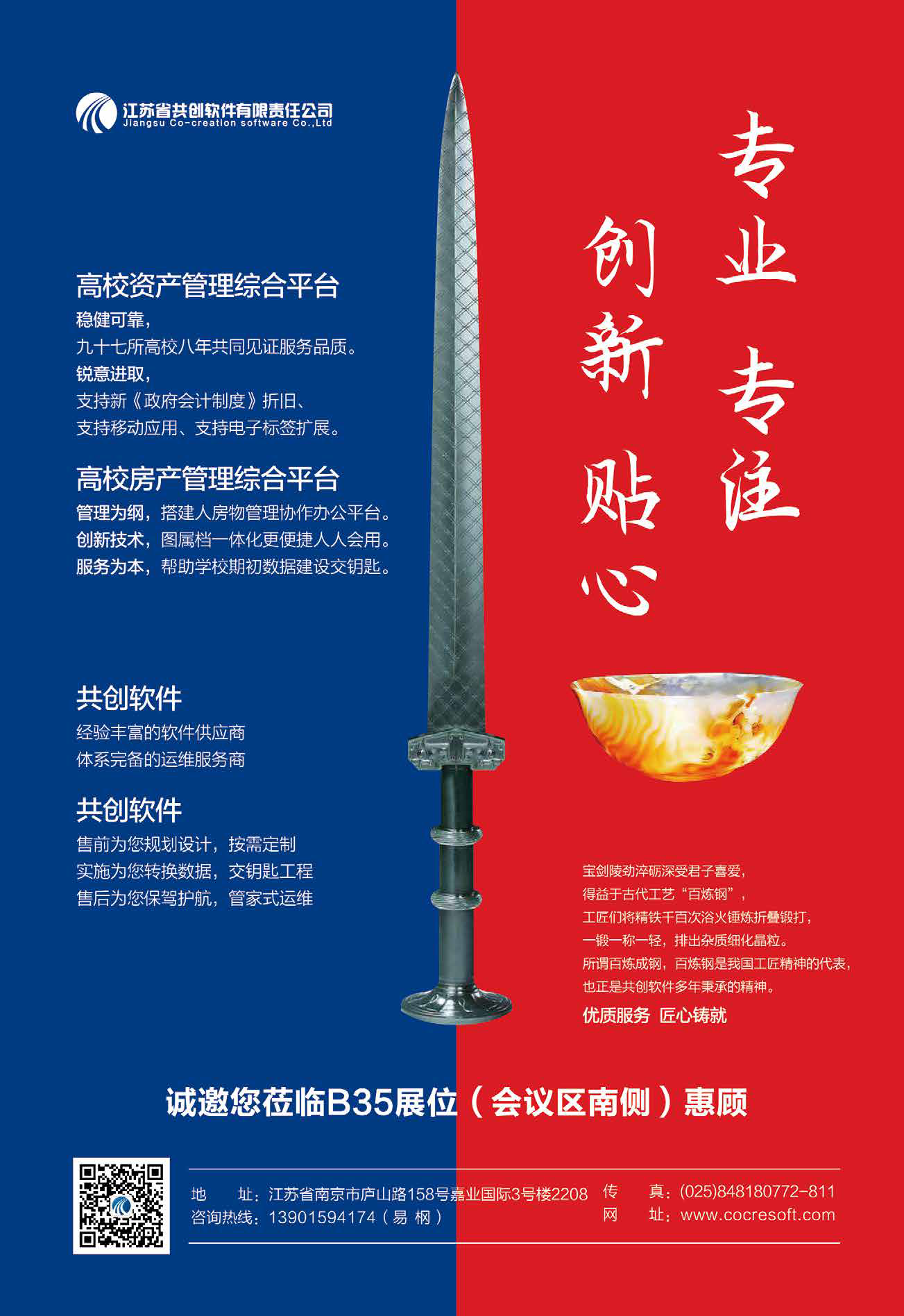 江苏省共创软件有限责任公司(简称共创软件)成立于1999 年,系江苏省高新技术企业,一直致力于教育信息化建设,及党政机关、行政、事业单位资产与办公用房信息化建设。共创软件帮助上百个区县教育局,十几个地市教育局推进信息化建设,并承担为了江苏省行政事业单位资产清查(2006 年、2016 年)两次,承担了全省行政事业单位资产年报,党政机关办公用房管理信息系统建设,行政事业单位公用房(含办公用房、业务用房、技术用房、住宅等)清查,中小学校舍、高校公用房(含党政办公用房、教学科研用房、生活后勤用房等)等信息化建设。目前已由单纯的软件供应商,转变为软件服务商,擅长在国有资产、党政办公用房、学校公用房领域全省性系统建设。我们深信信息化需要优质、专业、长期的服务,共创软件是您身边的好伙伴好帮手。“创新 创造 共赢 共享”是共创软件企业文化的核心,以创新精神不断创造优质服务,与员工、与用户、与社会共赢共享。以人为本、回报社会是共创软件长期坚守的经营理念。共创软件期待与各级用户、各类合作伙伴真诚合作,为教育信息化建设、为行政事业单位资产管理、为党政机关办公用房及资产管理做出新贡献。